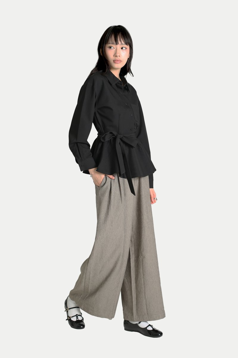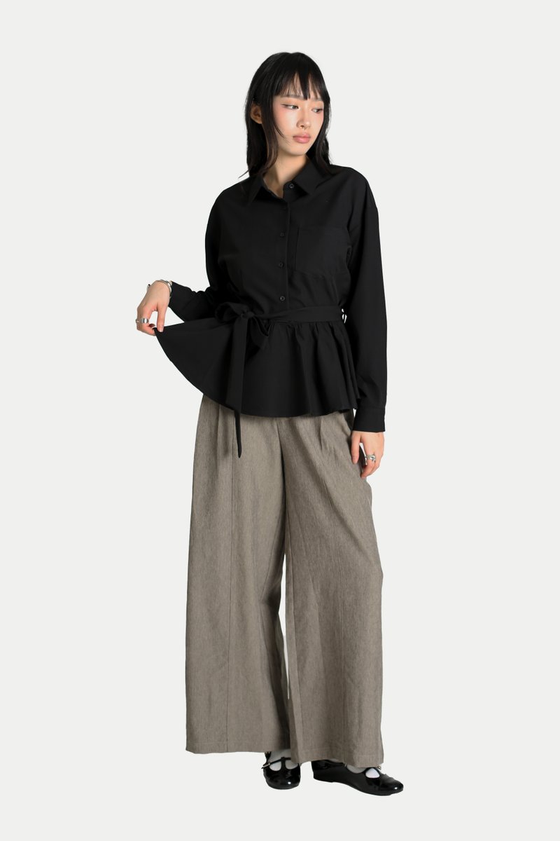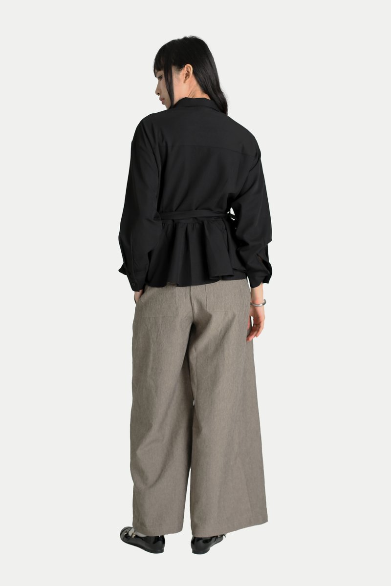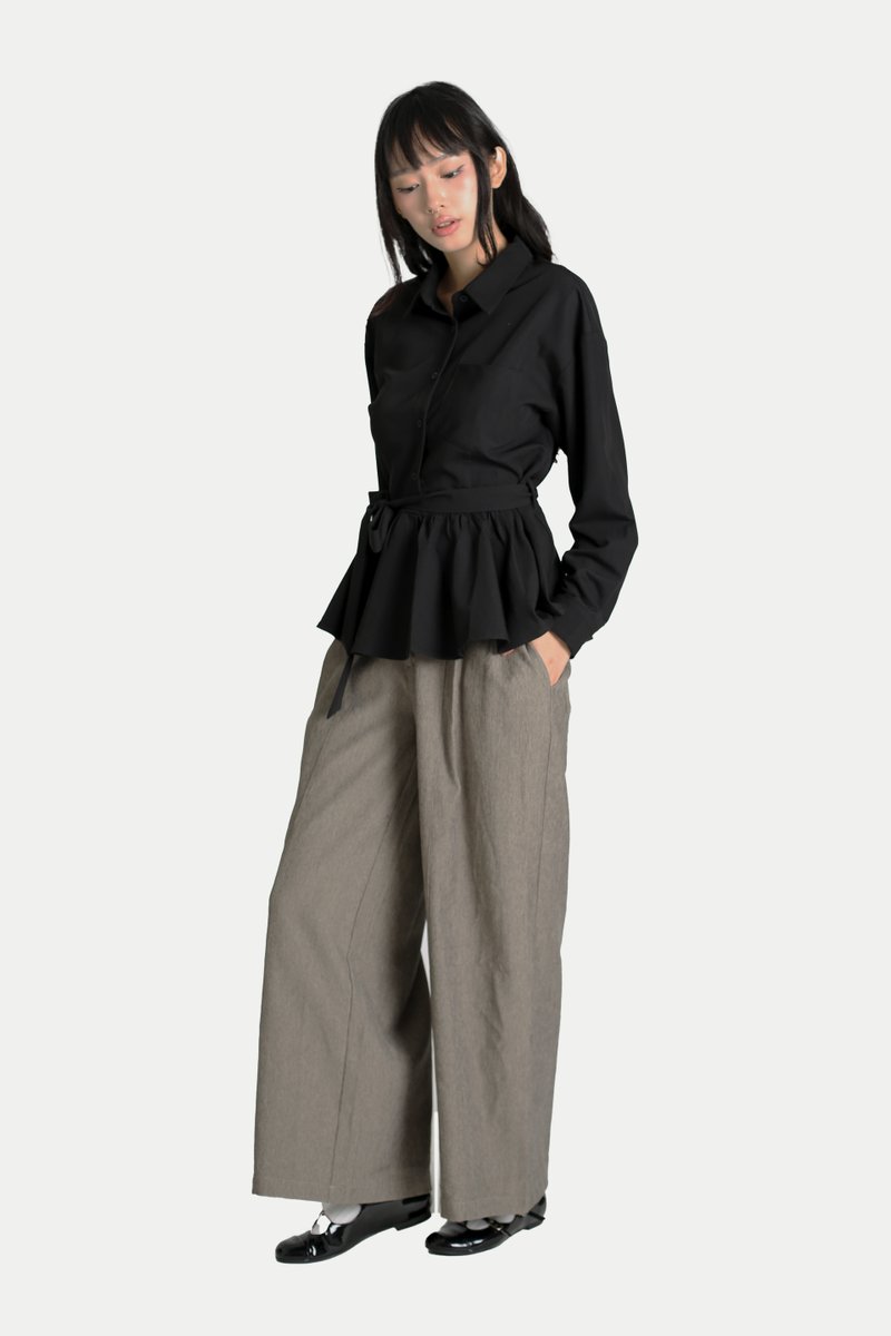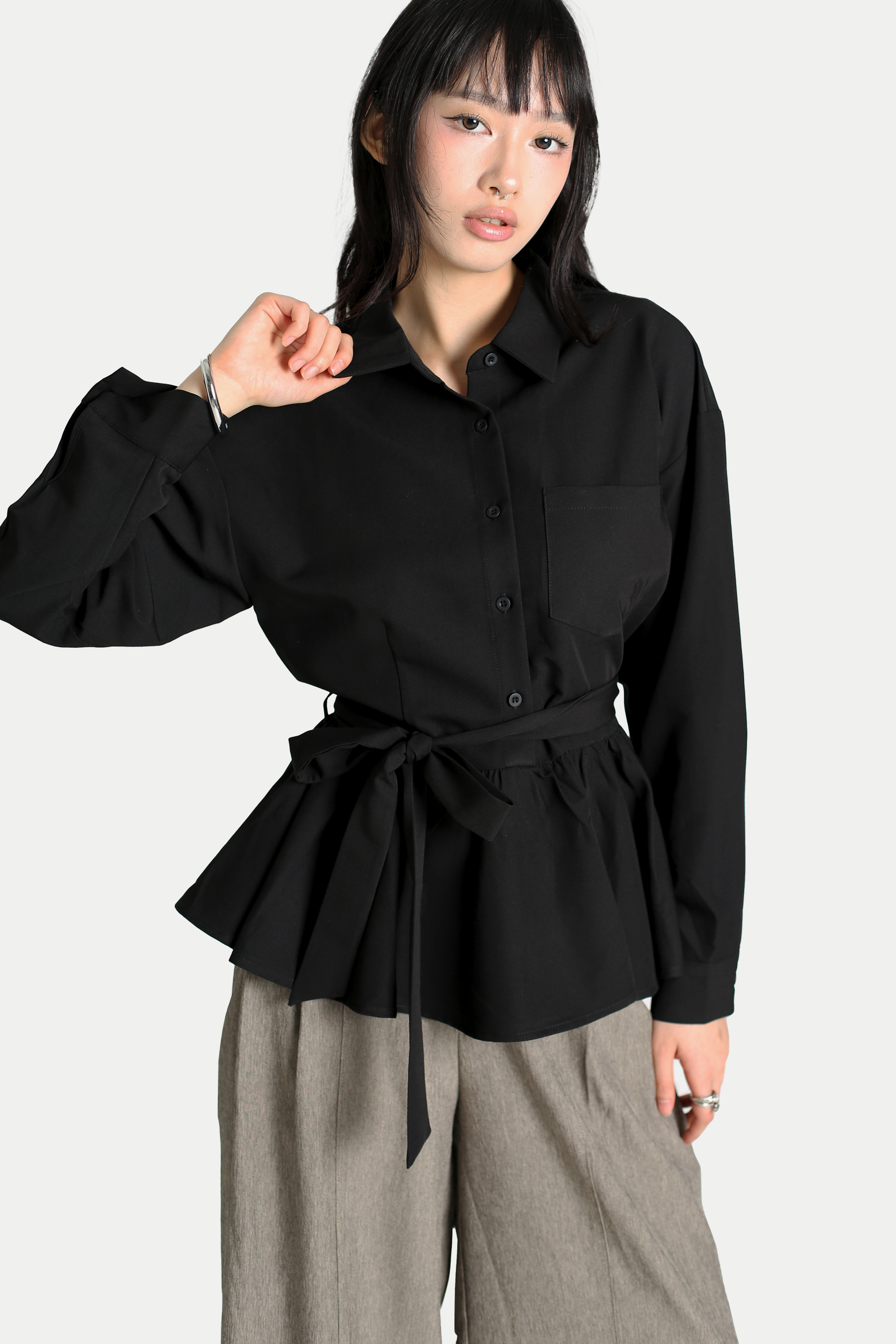 EVELYN PEPLUM FLANNEL SHIRT IN BLACK