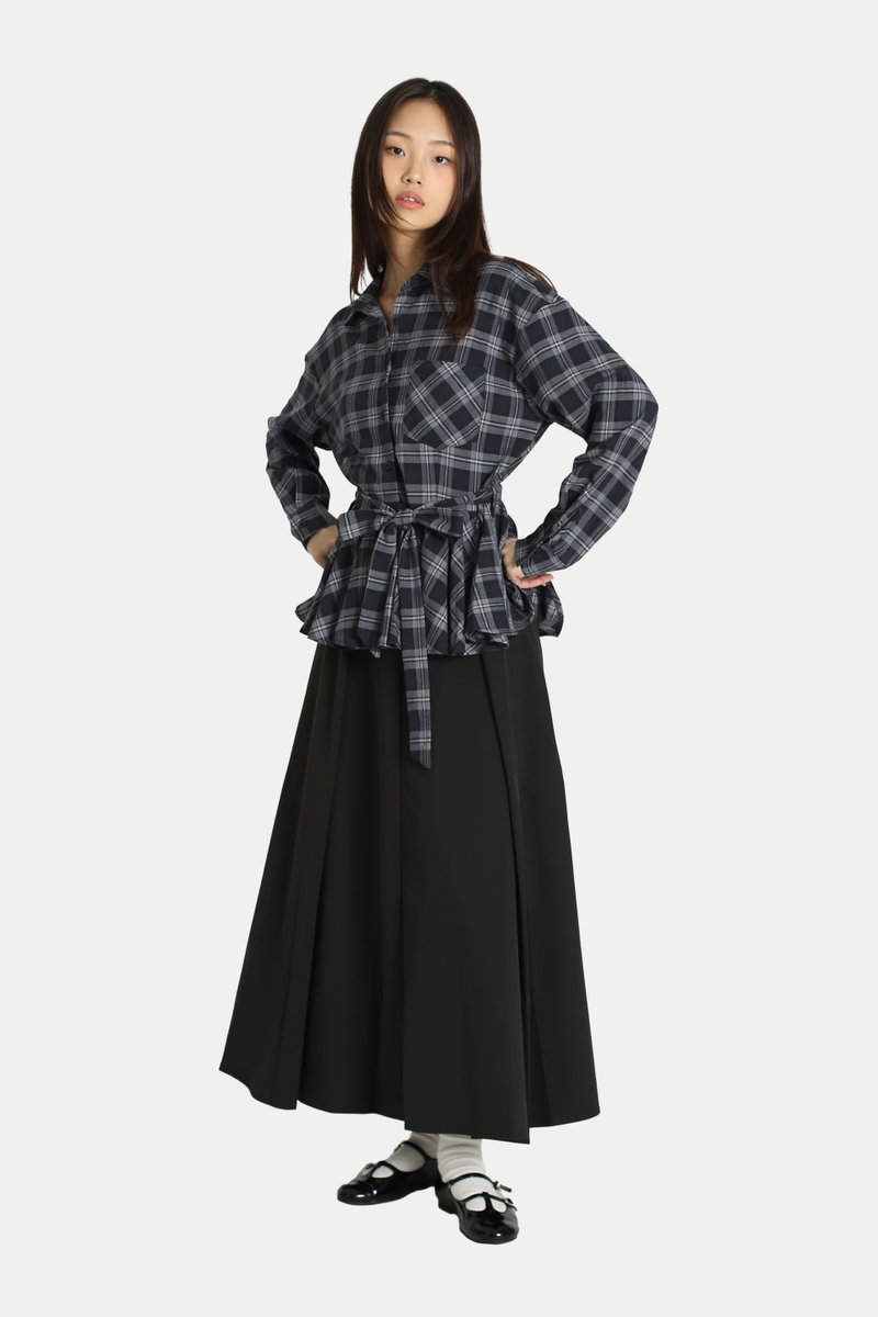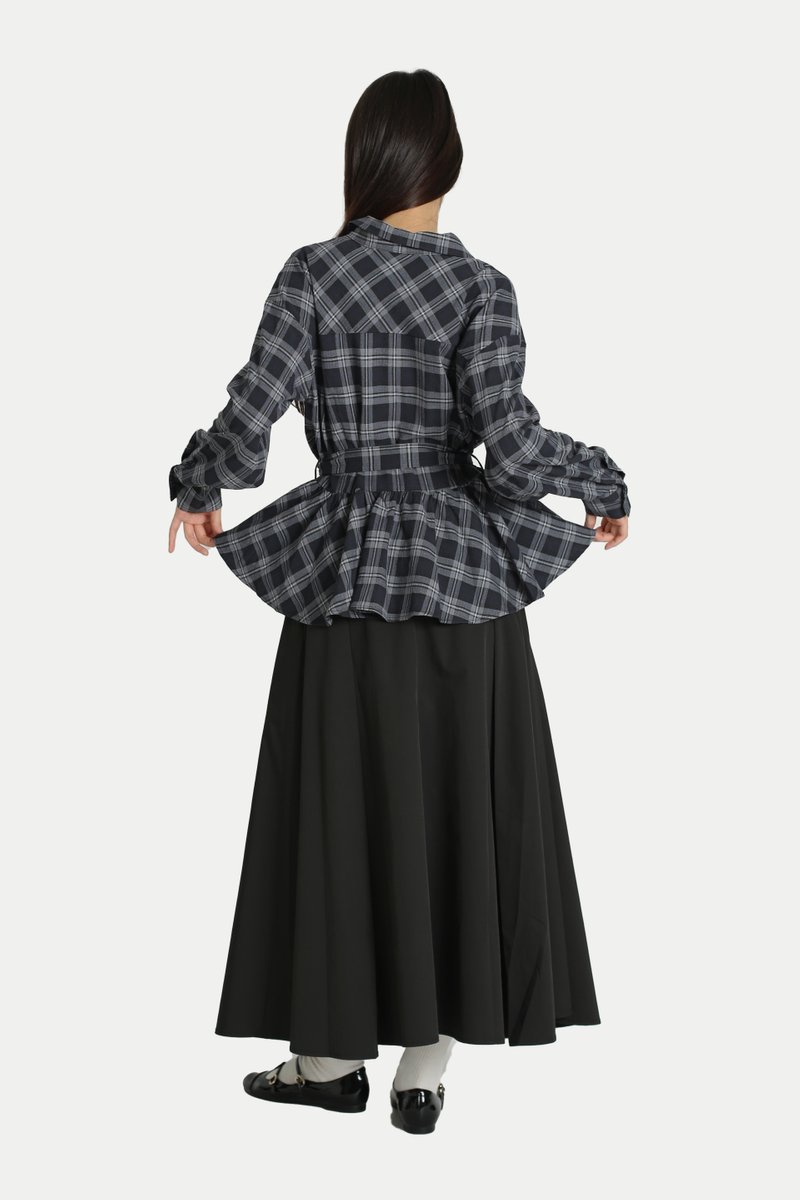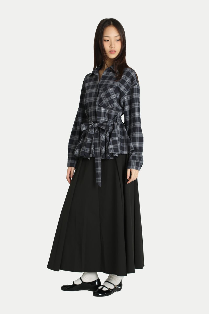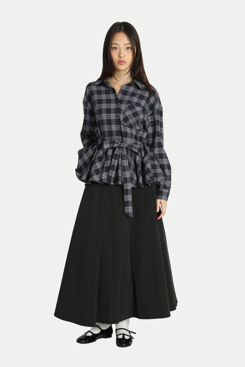 EVELYN PEPLUM FLANNEL SHIRT IN MIDNIGHT PLAID