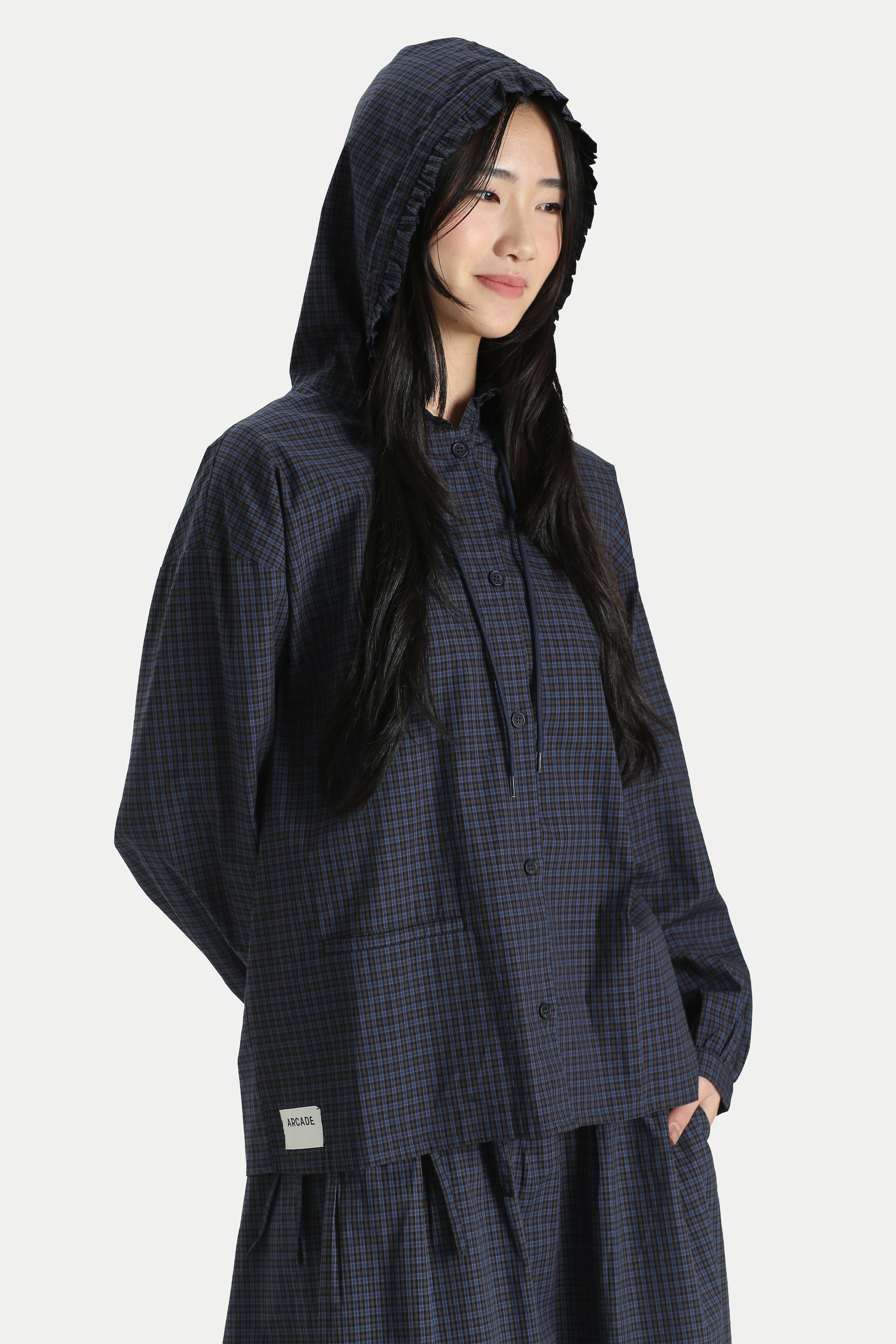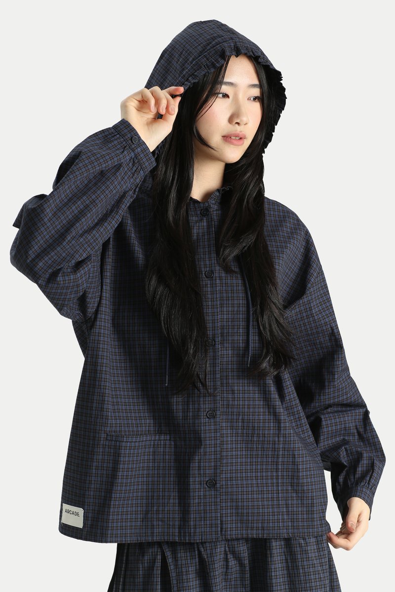 The Fleurette Oversized Frill Hoodie Shirt is an extremely cute and playful piece. Designed with a boxy silhouette and a frill hemmed hoodie, it adds a soft, feminine touch to a casual shirt. Easily pair it with a skirt for a cute garden day look, or style it with oversized jeans for a laid-back street style outfit. Opens via a front button closure. Unlined.