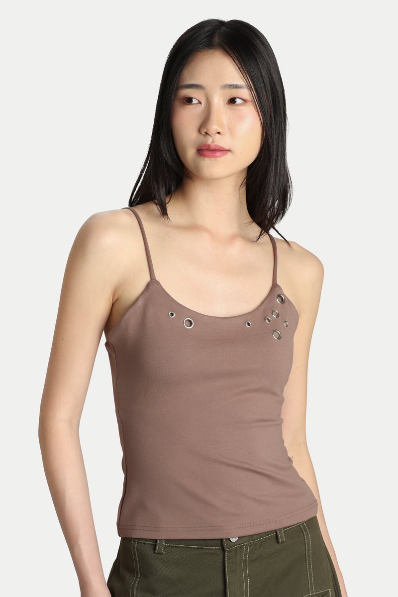 JEMMA PADDED EYELET TANK TOP IN HOJICHA