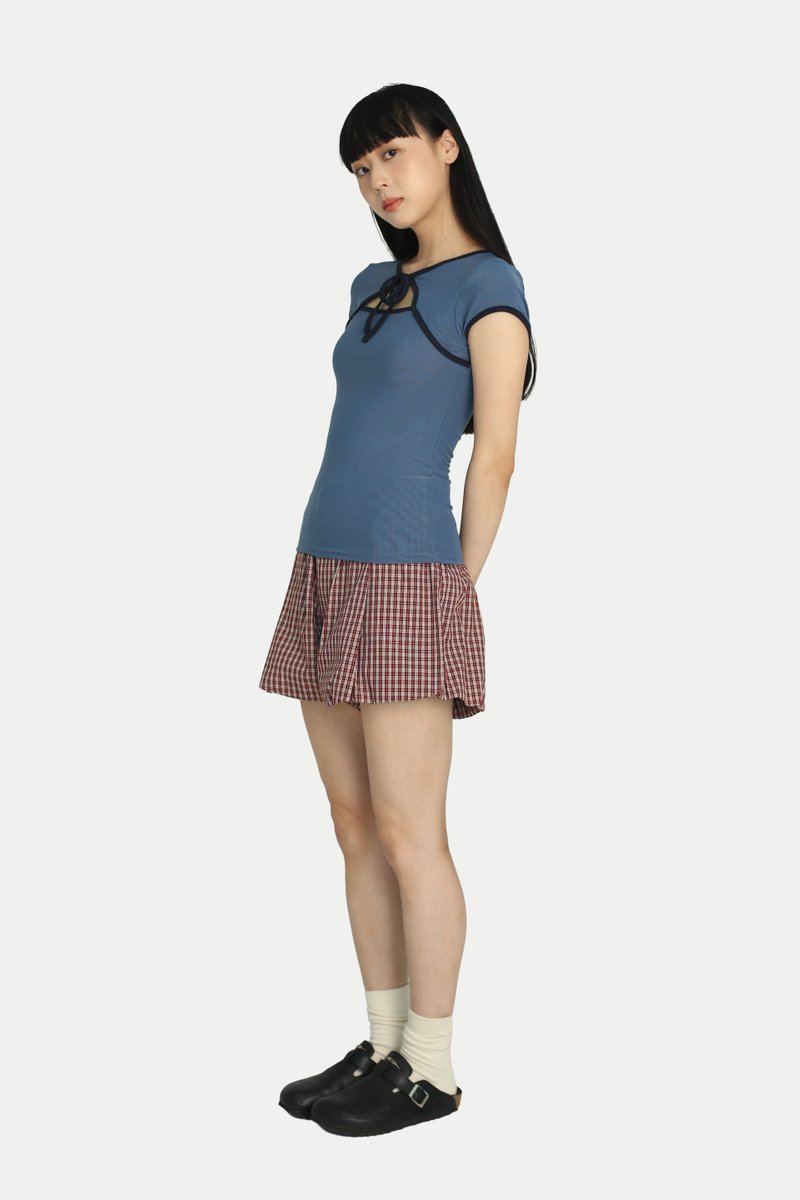 JENA MESH CUT-OUT TOP IN BLUEBERRY