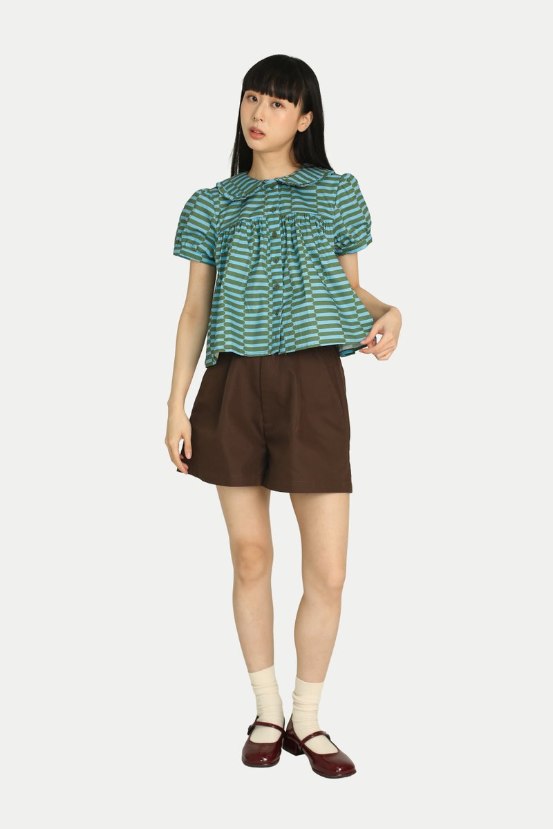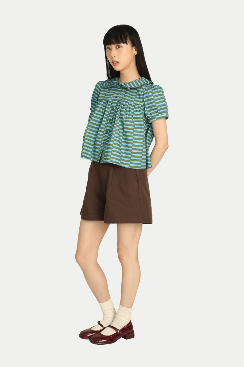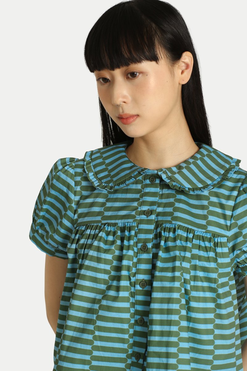 Feeling the festive season and looking for a fun top? Our Josie “GROOVY” Babydoll Top is both cute and comfortable. Featuring a rounded gathered collar, puff sleeves, and a flared silhouette, it creates an effortlessly charming look. Not to forget our in-house print, which elevates the festive feel and makes it a statement piece. Pair it with our Madlyn “GROOVY” Midi Gather Skirt for a complete set. Opens with front buttons. Unlined.