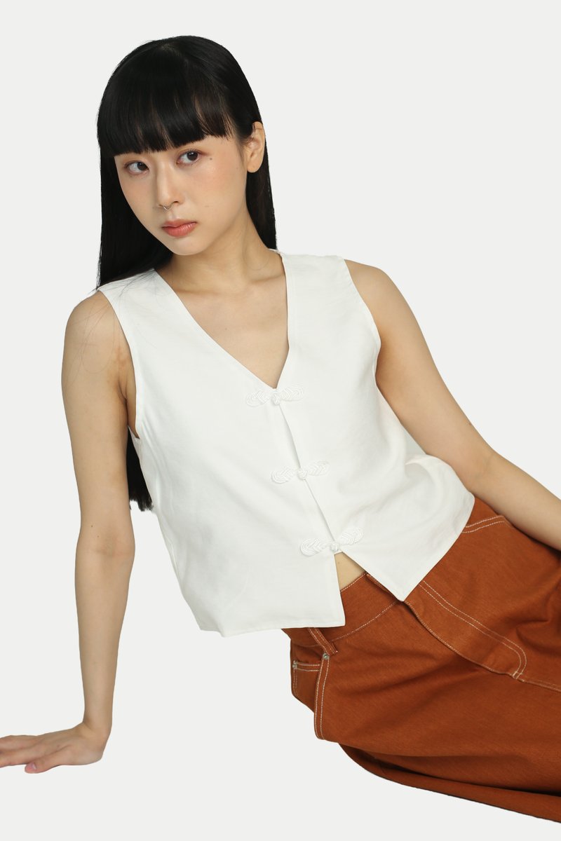 KOEMI CHEONGSAM VEST TOP IN WHITE