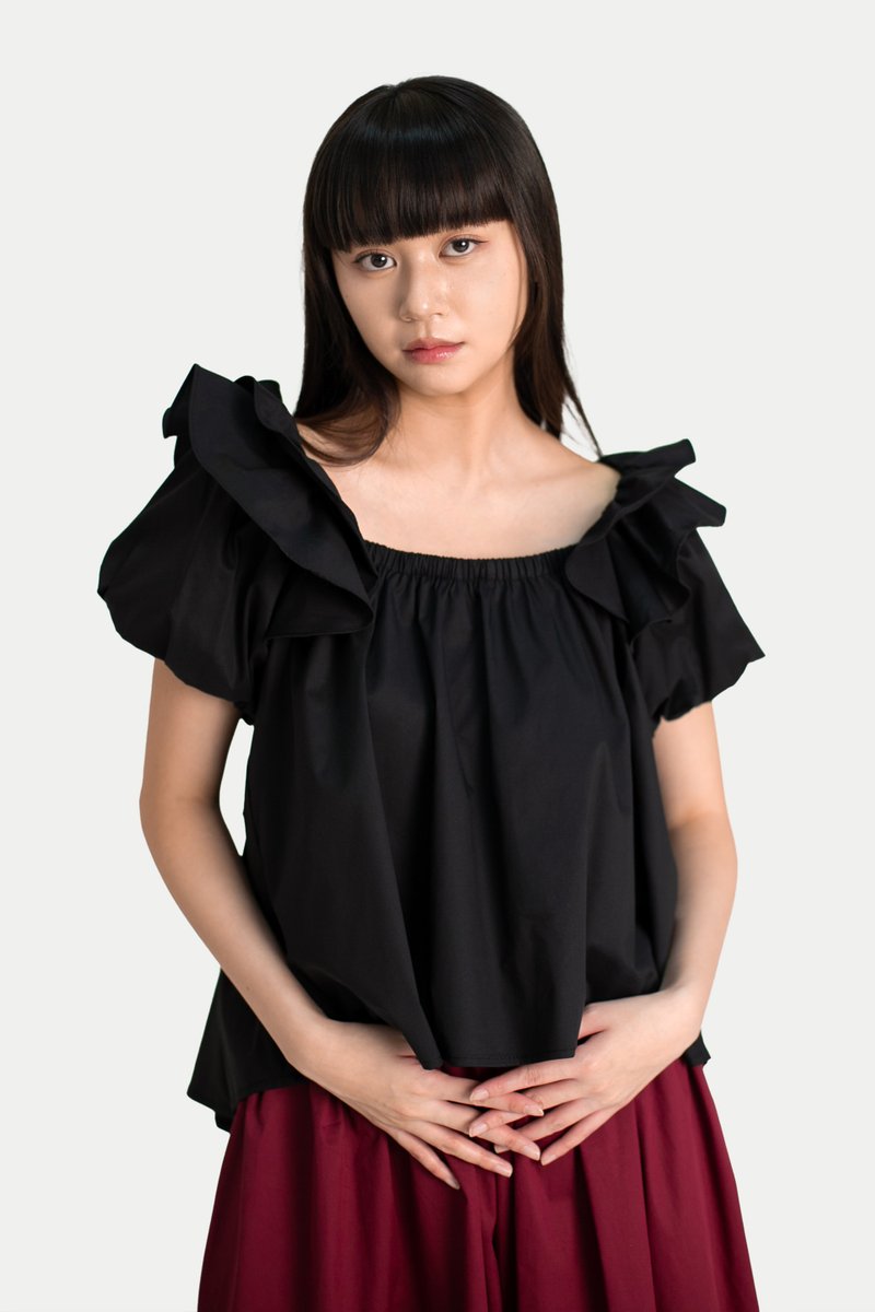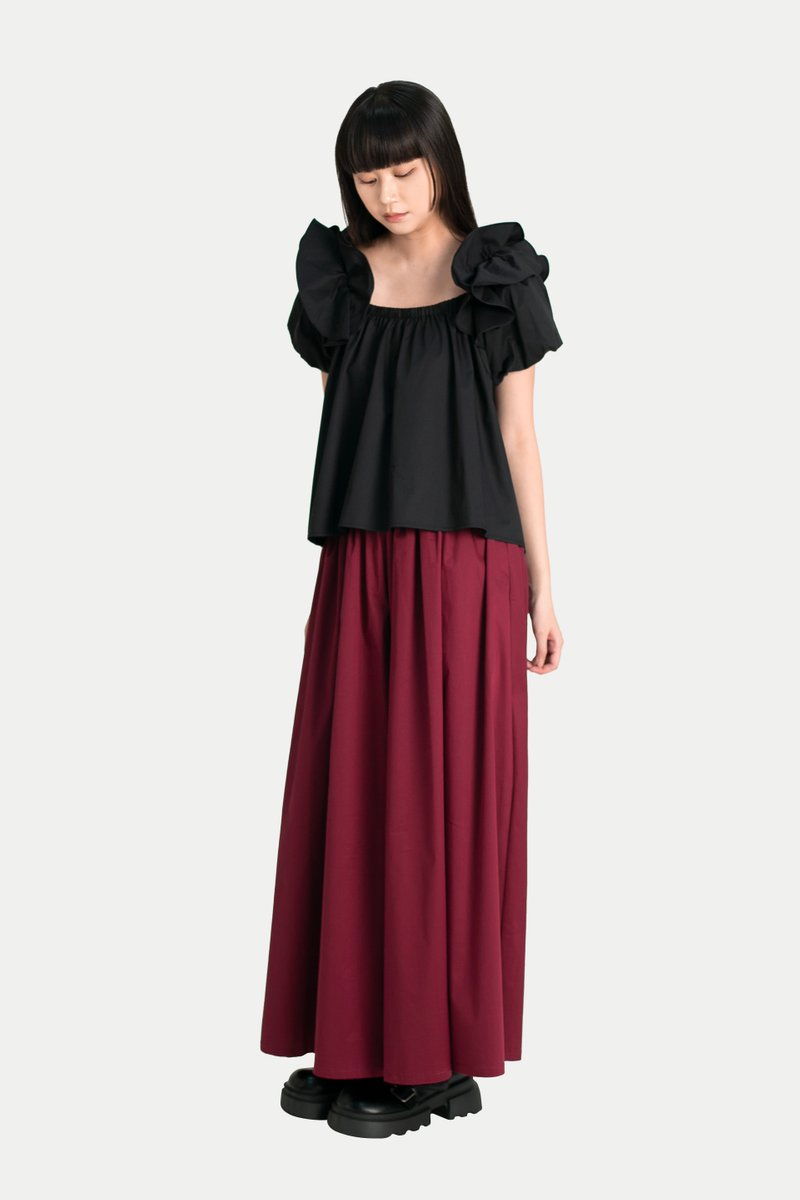 The Leana Cloud Flare Top is a blend of ethereal elegance and avant-garde design. It features puff sleeves with extra gathers to create a dramatic silhouette, paired with a straight neckline and a flared bodice. The look is finished with a beautiful scoop back and delicate straps that tie into a ribbon. Style it with ourMadlyn Midi Gather Skirt for a complete set, or pair it with flared pants for an effortlessly ethereal feel. Slip-on wear. Lined.