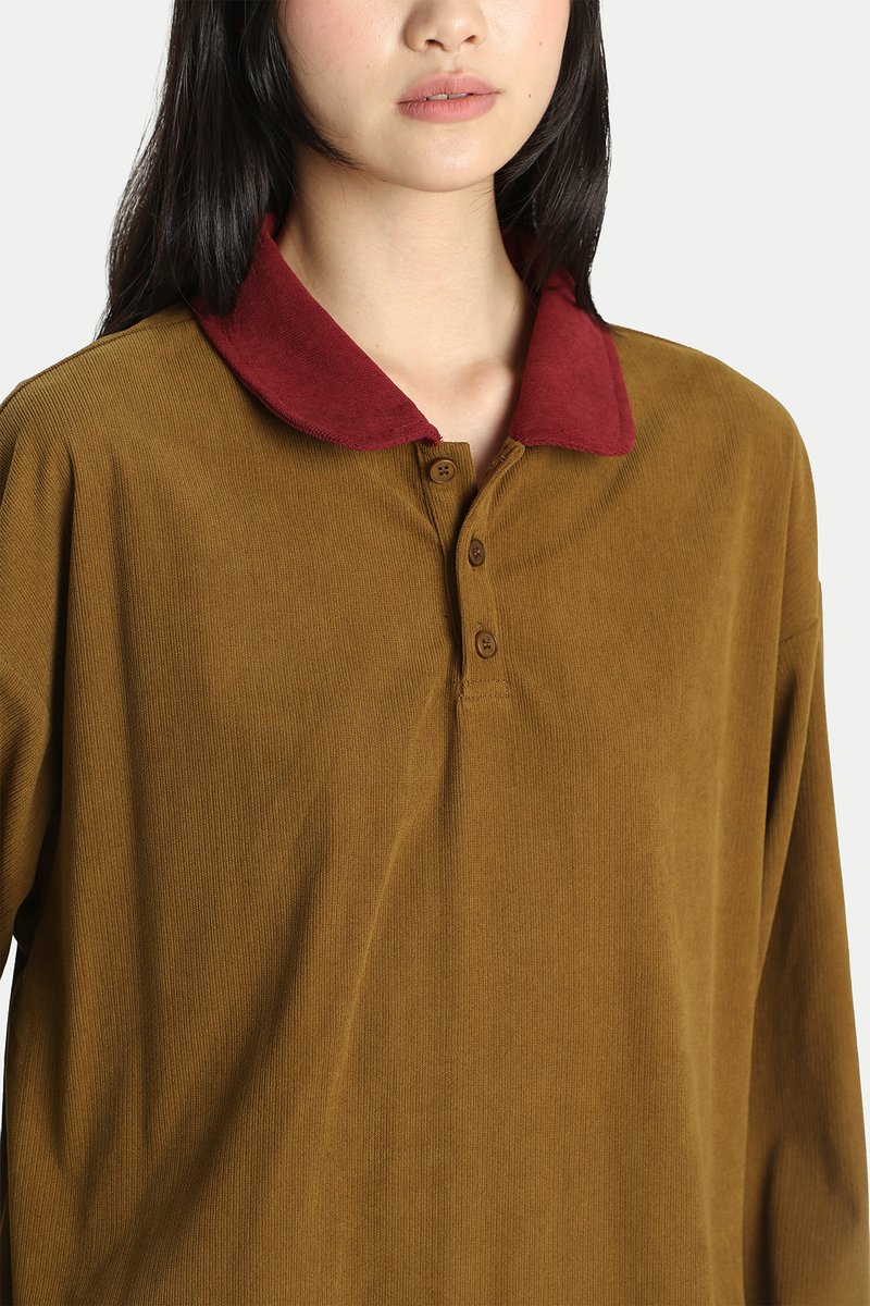 LEIA CONTRAST ROUND COLLAR POLO IN SADDLE