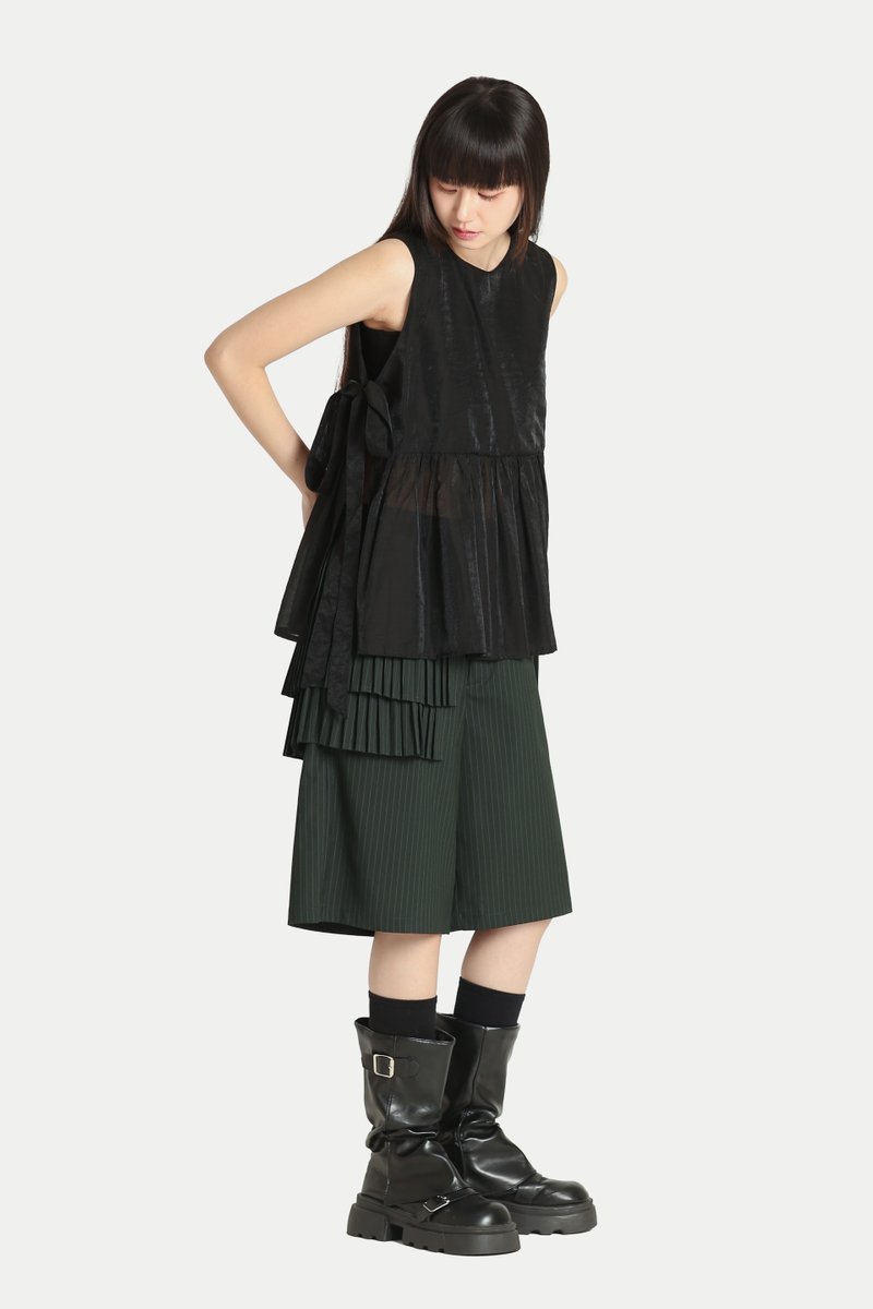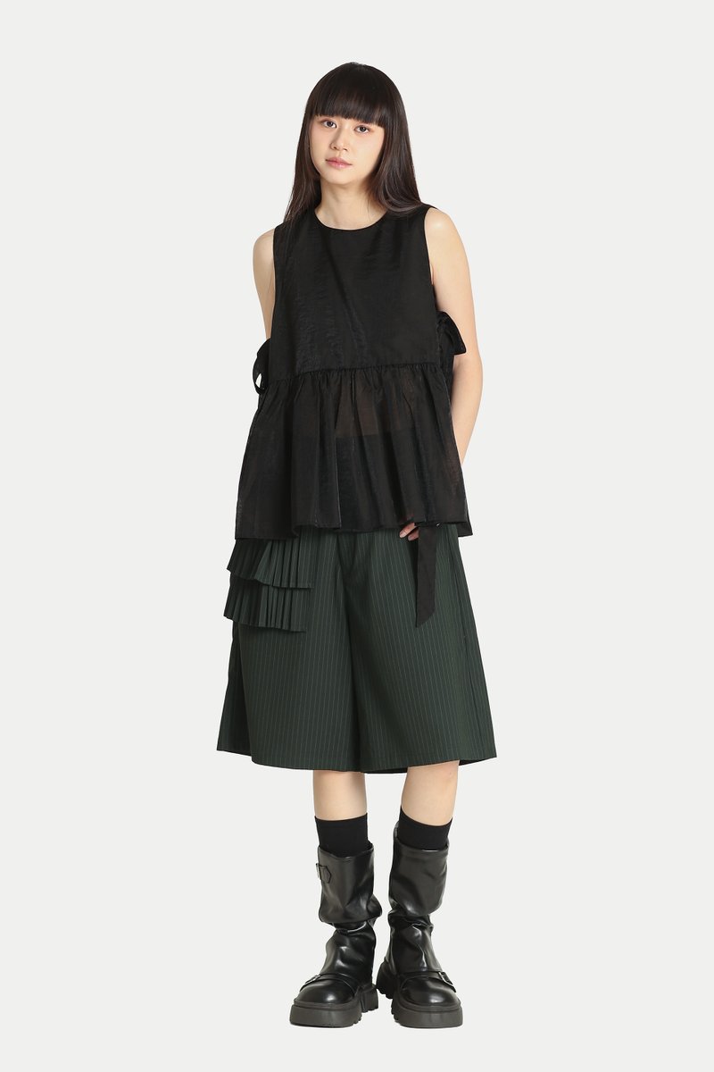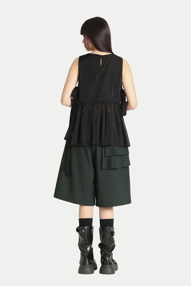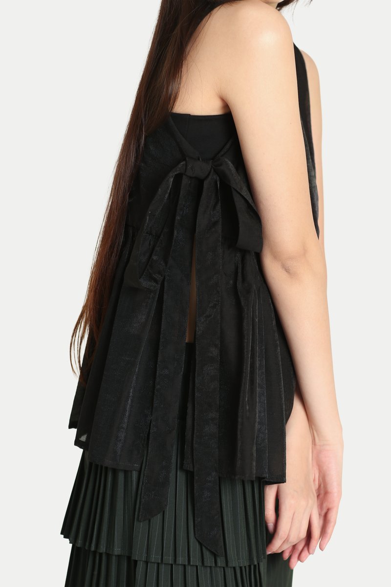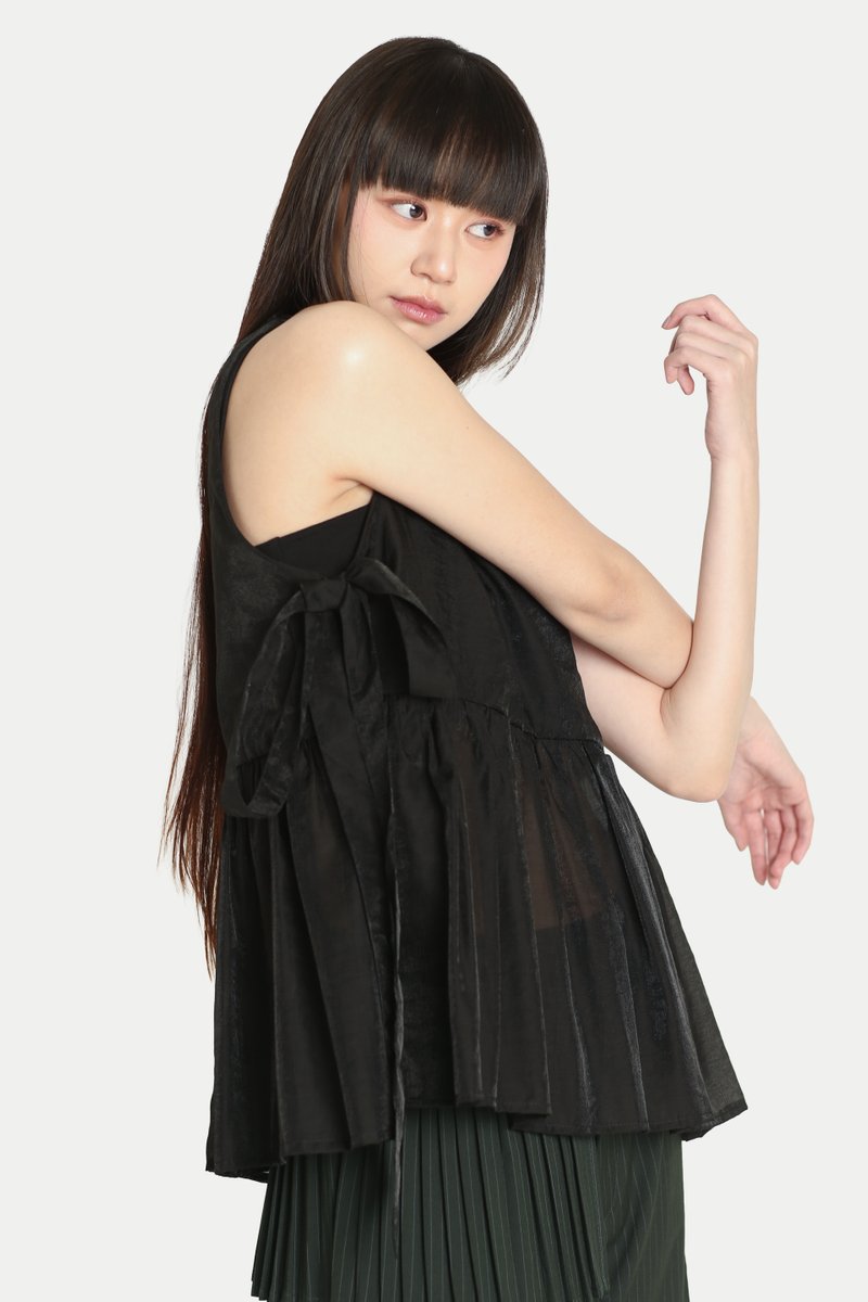 LYDIA SIDE TIE FLARE SHEER TOP IN BLACK
