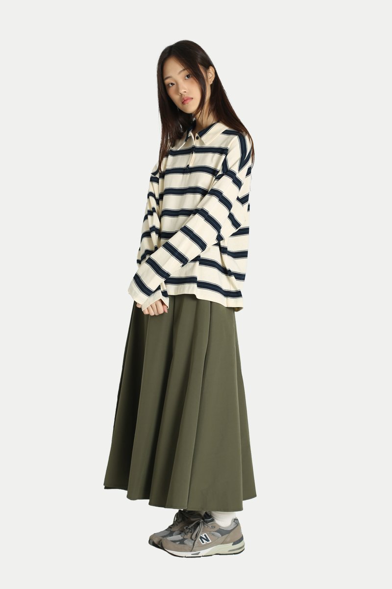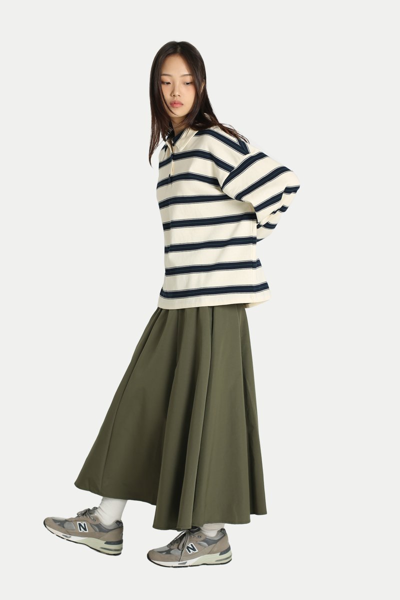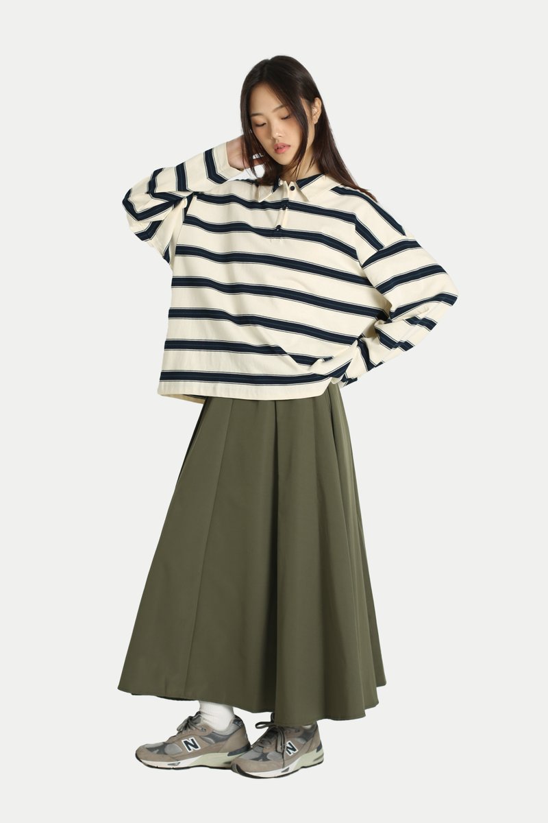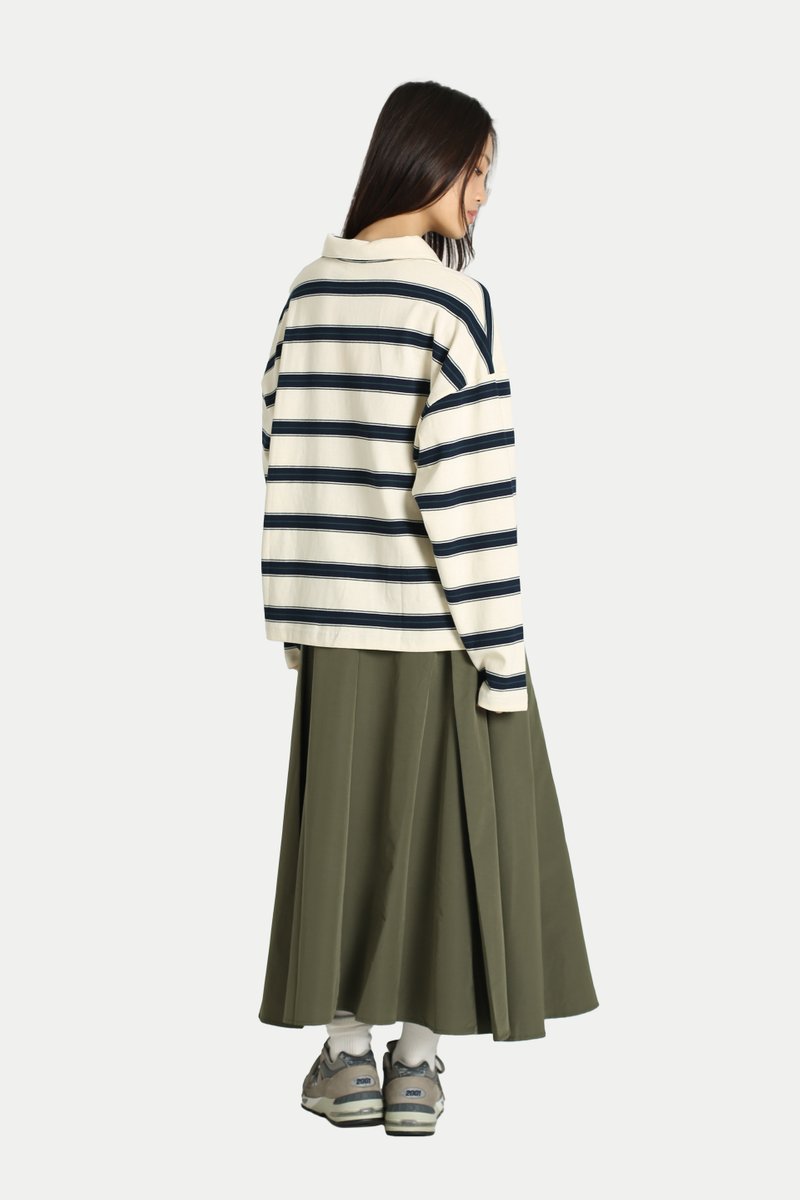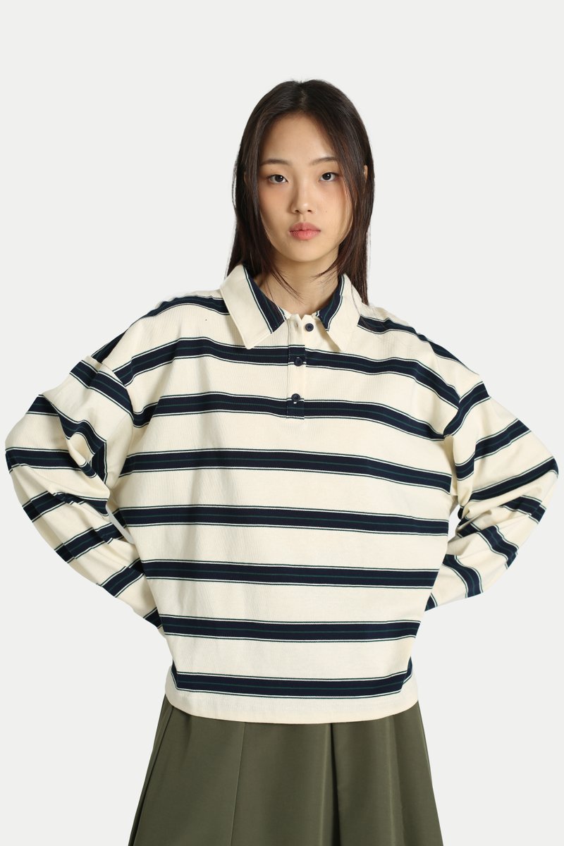 RAYELLE STRIPE LONG SLEEVE POLO SHIRT IN CREAM