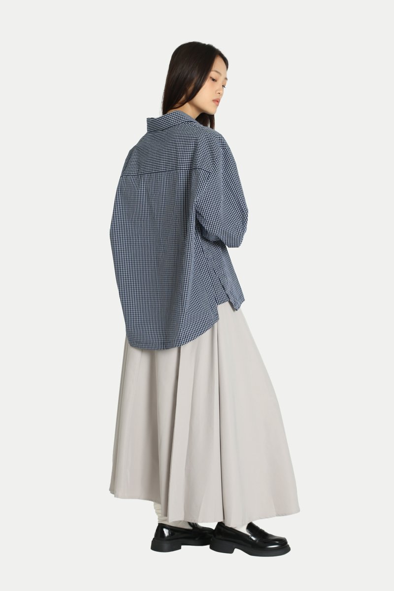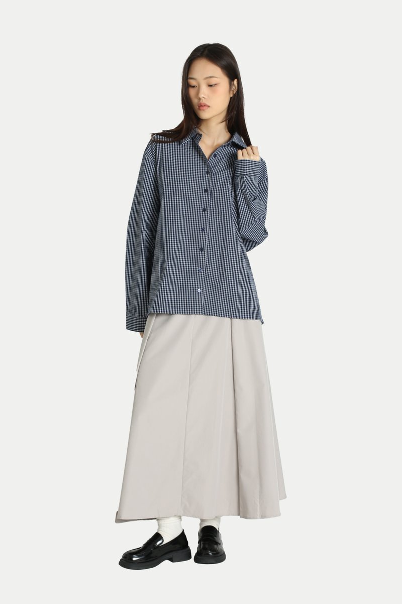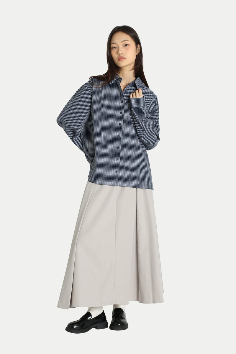 REINA SIDE PANEL SHIRT IN NAVY CHECKS