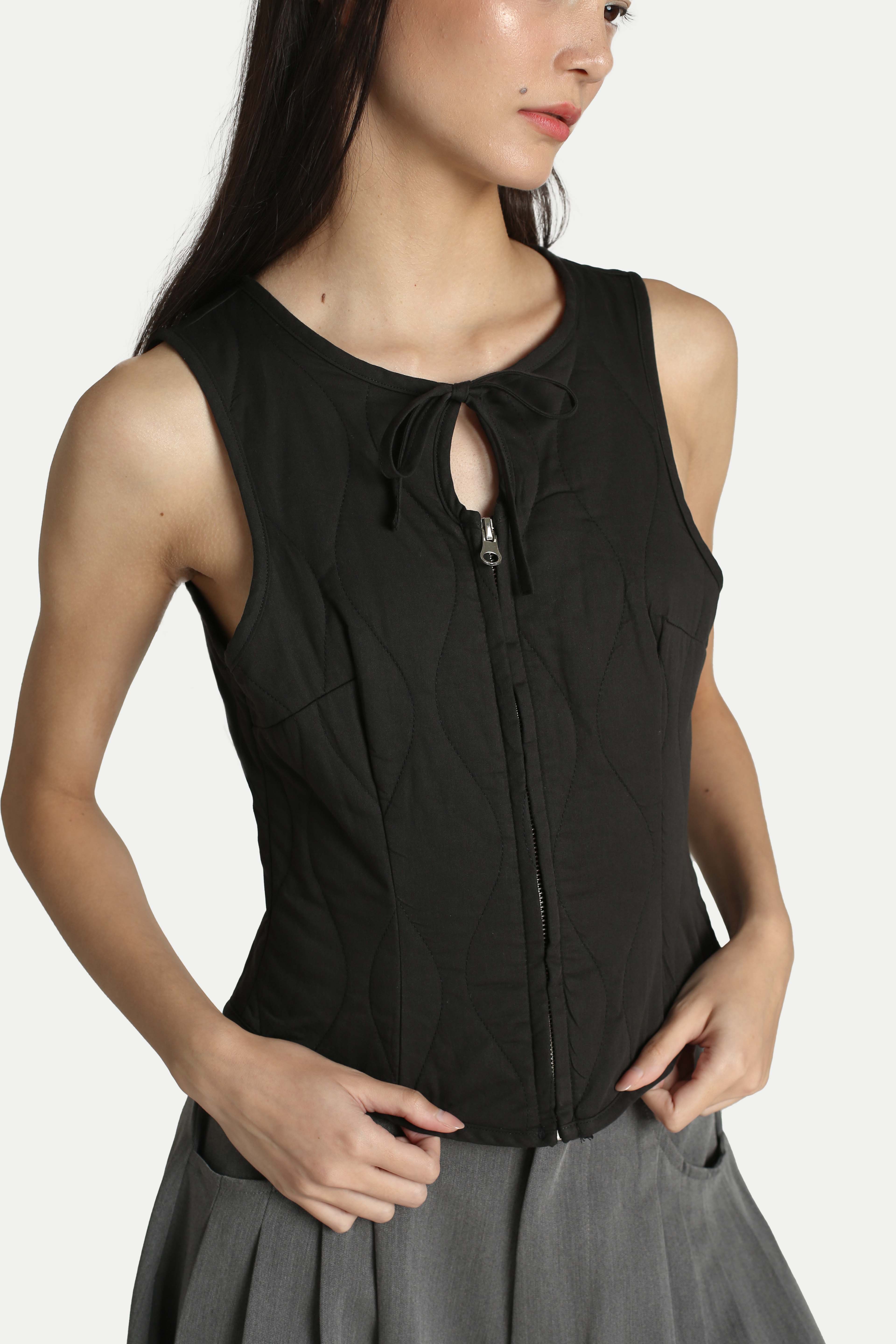 RYOTA QUILTED ZIP-UP TOP IN BLACK