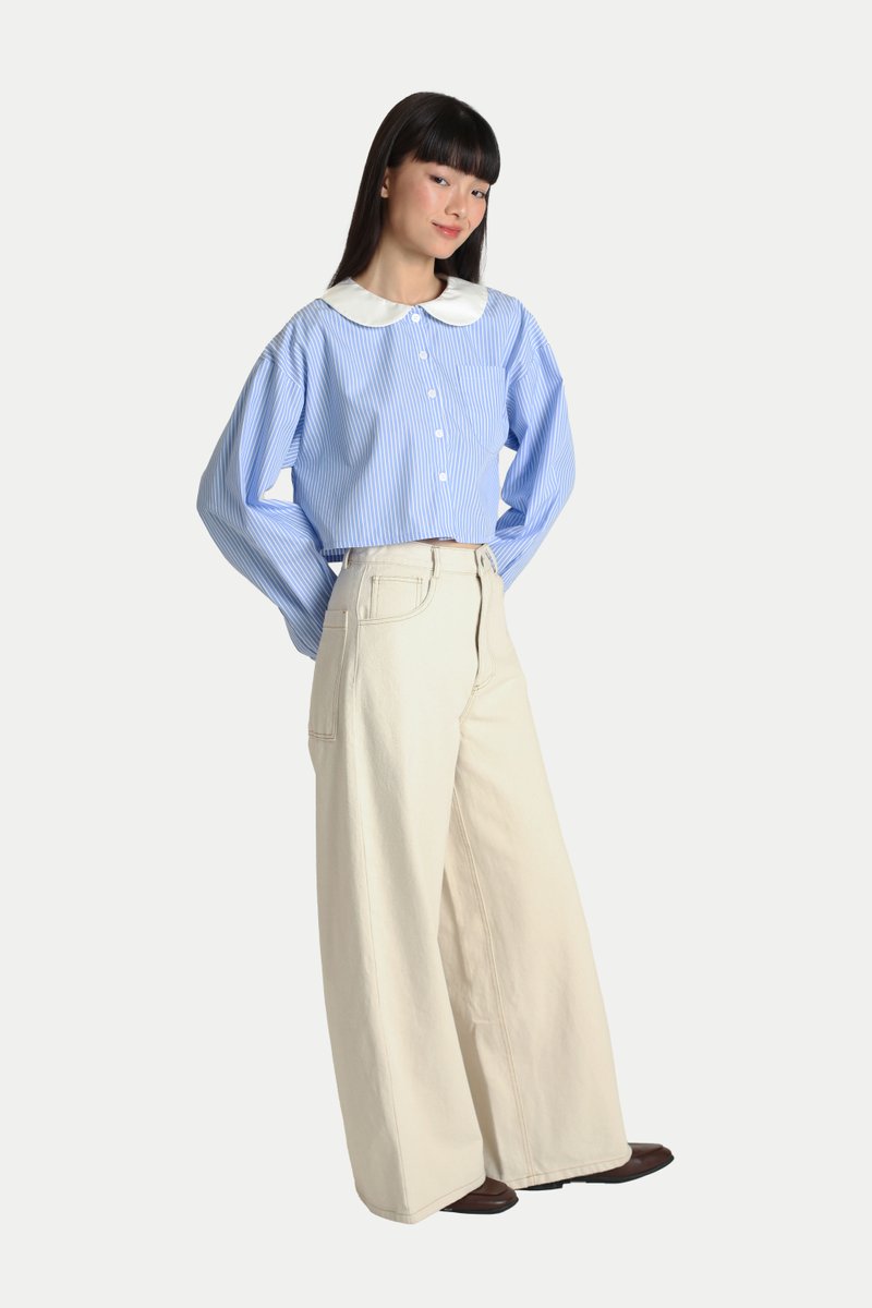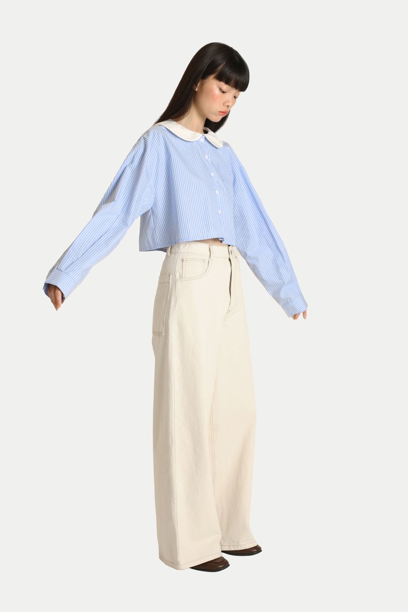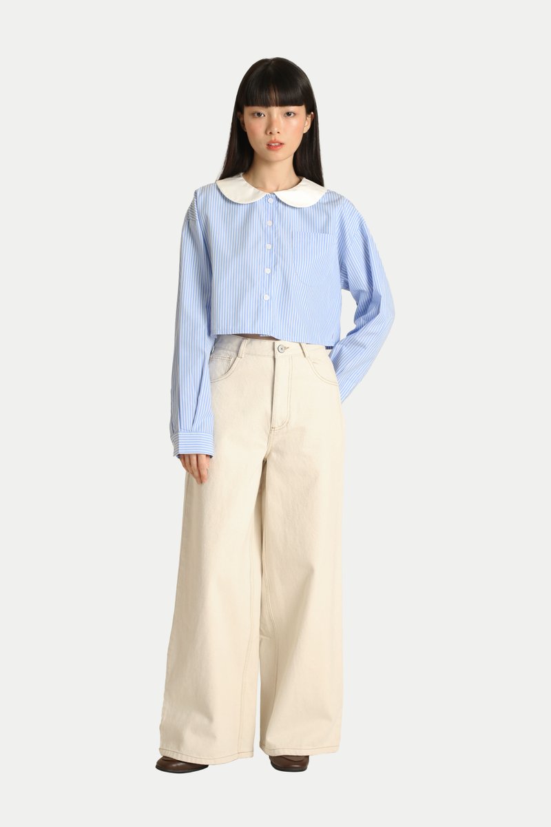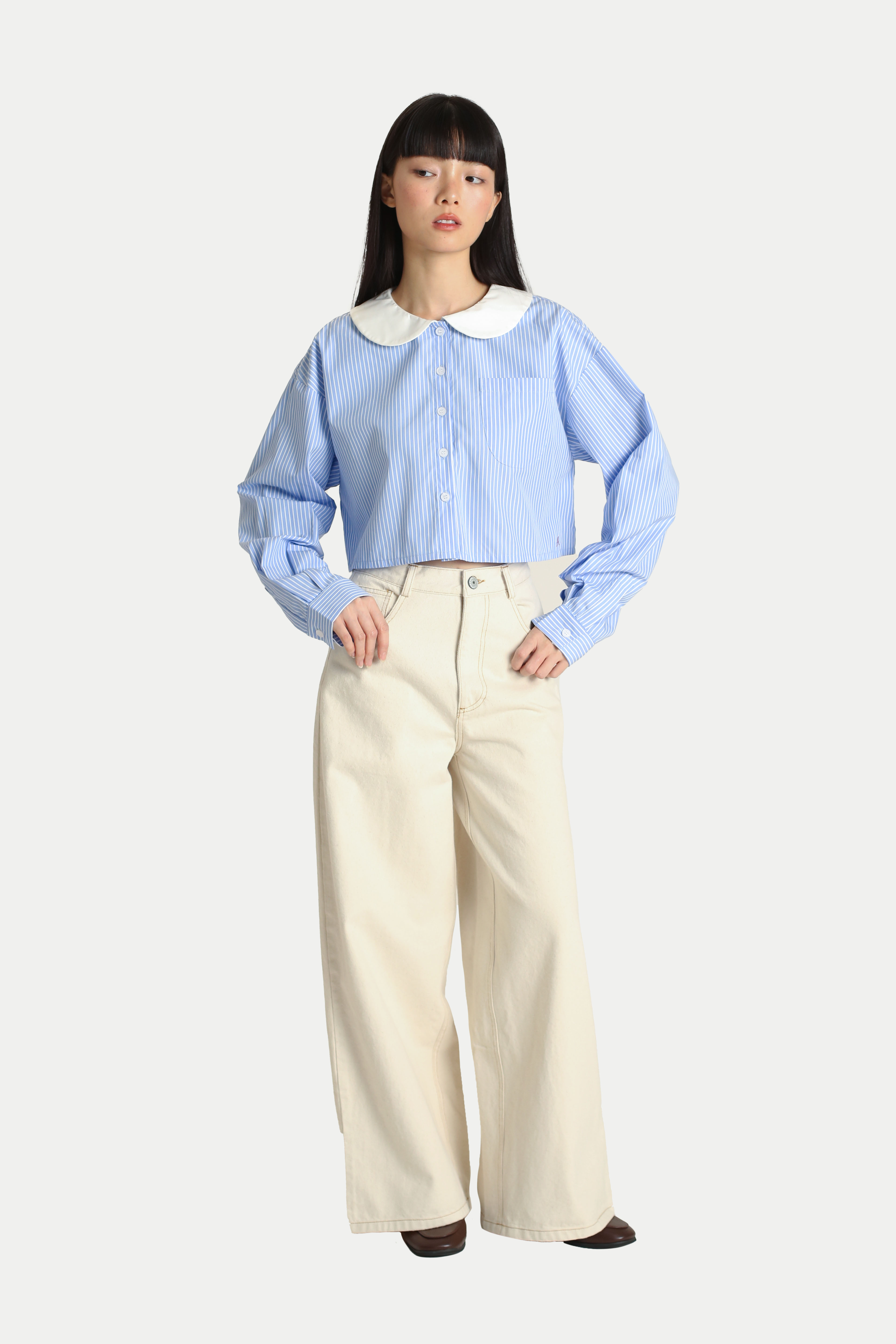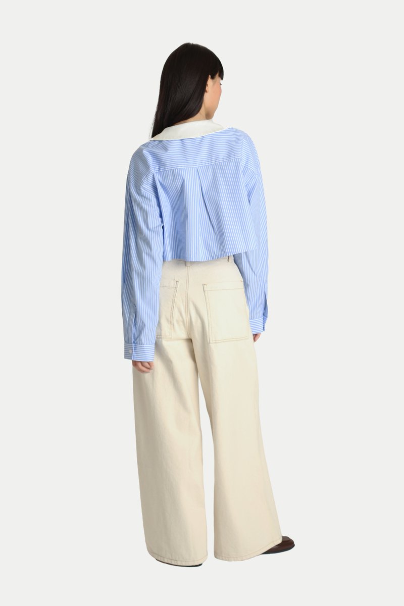 Looking for an easy-to-wear yet adorable staple? Our Serena Round Collar Crop Shirt is perfect for you! Designed with a cute contrast round collar, a front pocket to stash your essentials, and our signature Arcade "A" embroidery on the hem. Made from breathable, comfortable cotton poplin, it keeps you cool and stylish all day. Pair it with a skirt for a cute look or jeans for something more laid-back. Features a front button-down closure. Unlined.