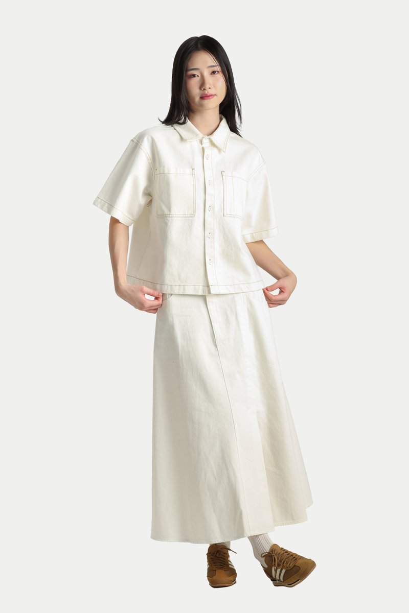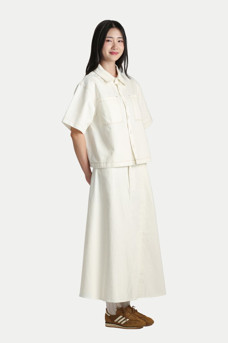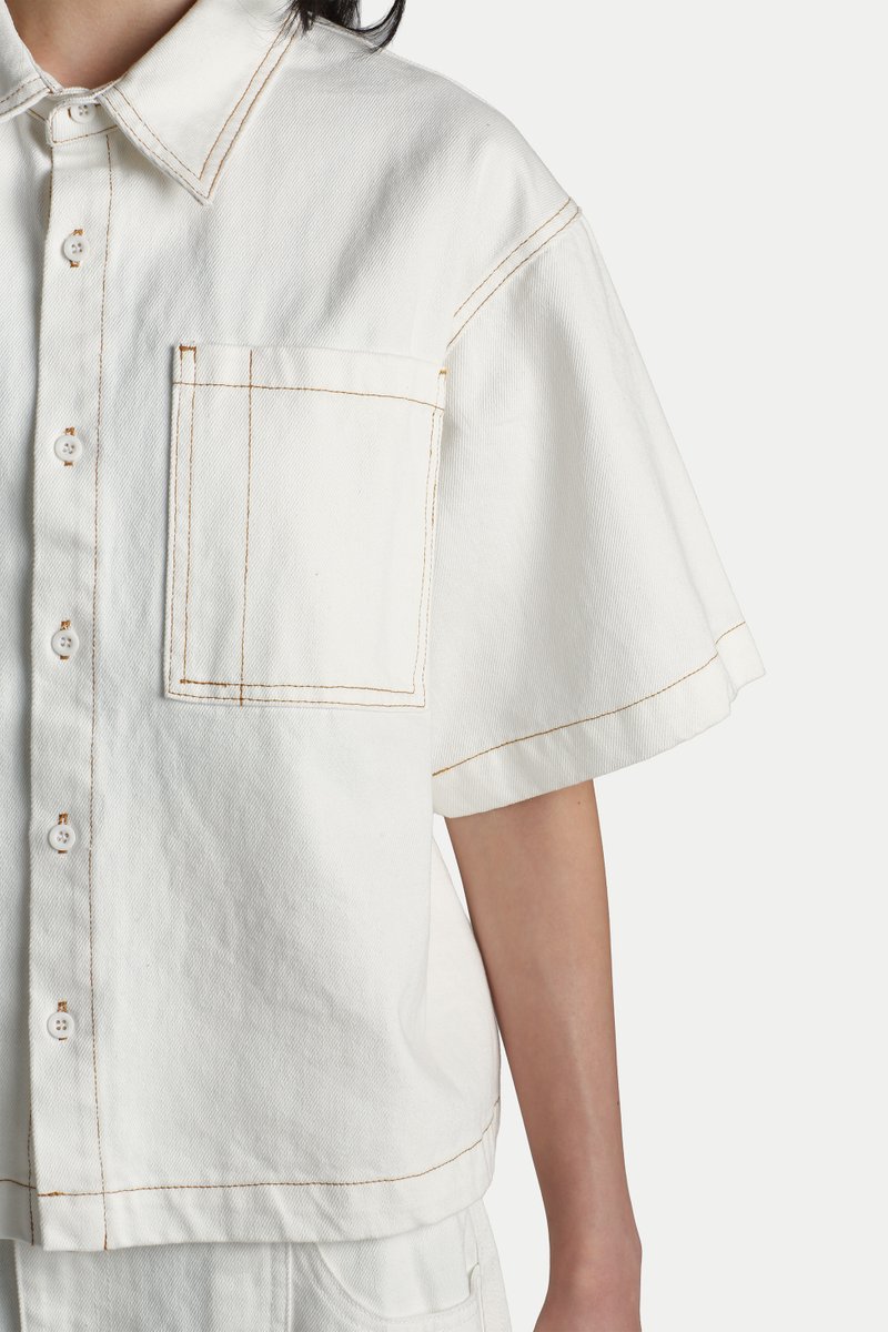 YURI BOXY DENIM WORK SHIRT IN WHITE