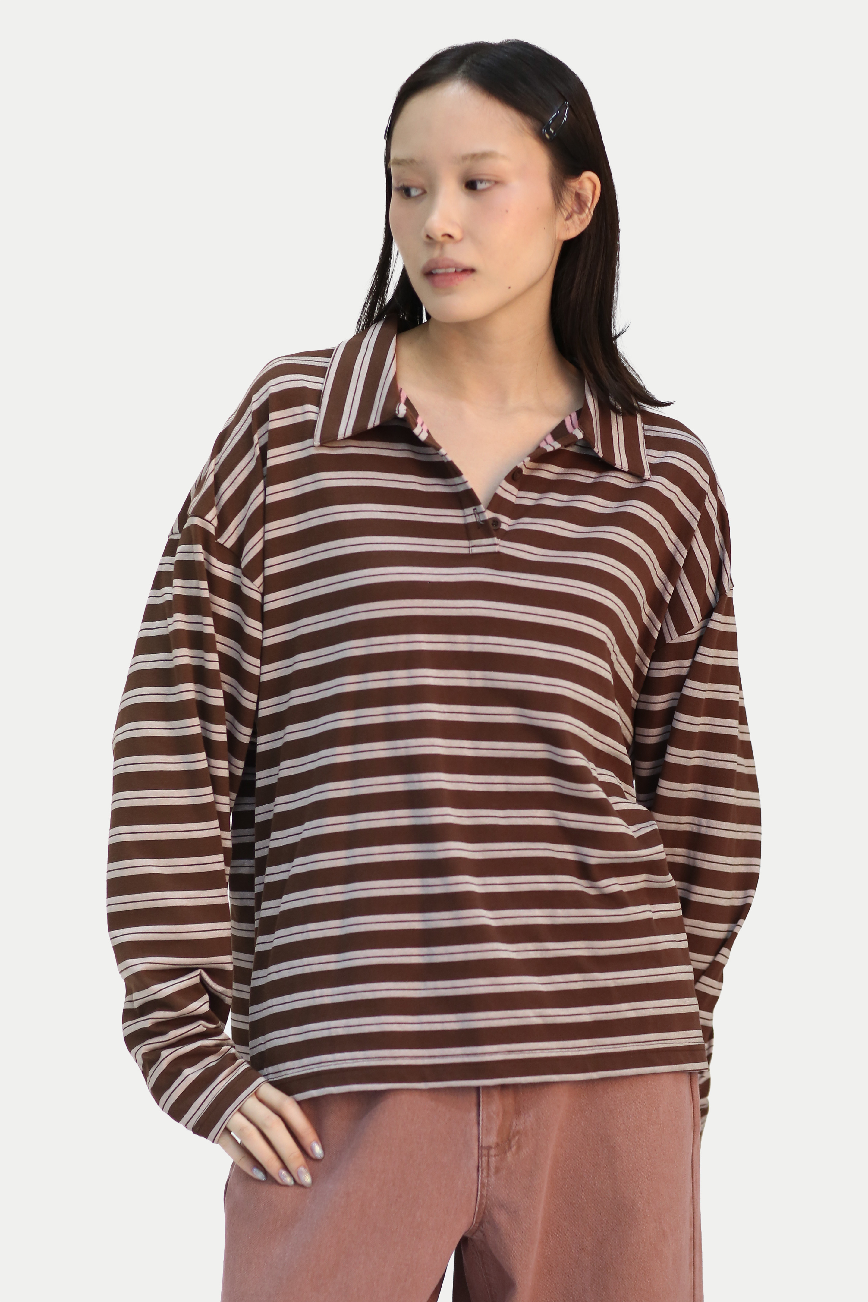 The Rayelle Stripe Long Sleeve Polo Shirt is an effortlessly comfortable piece, perfect for everyday wear. Crafted from a breathable cotton-blend jersey, it’s ideal for warm-weather days. Featuring a henley button-down design and a relaxed boxy silhouette, it’s made for those laid-back, chill moments. Just throw it on with your favourite bottoms and you're all set for a comfy day. Slip-on style. Unlined.