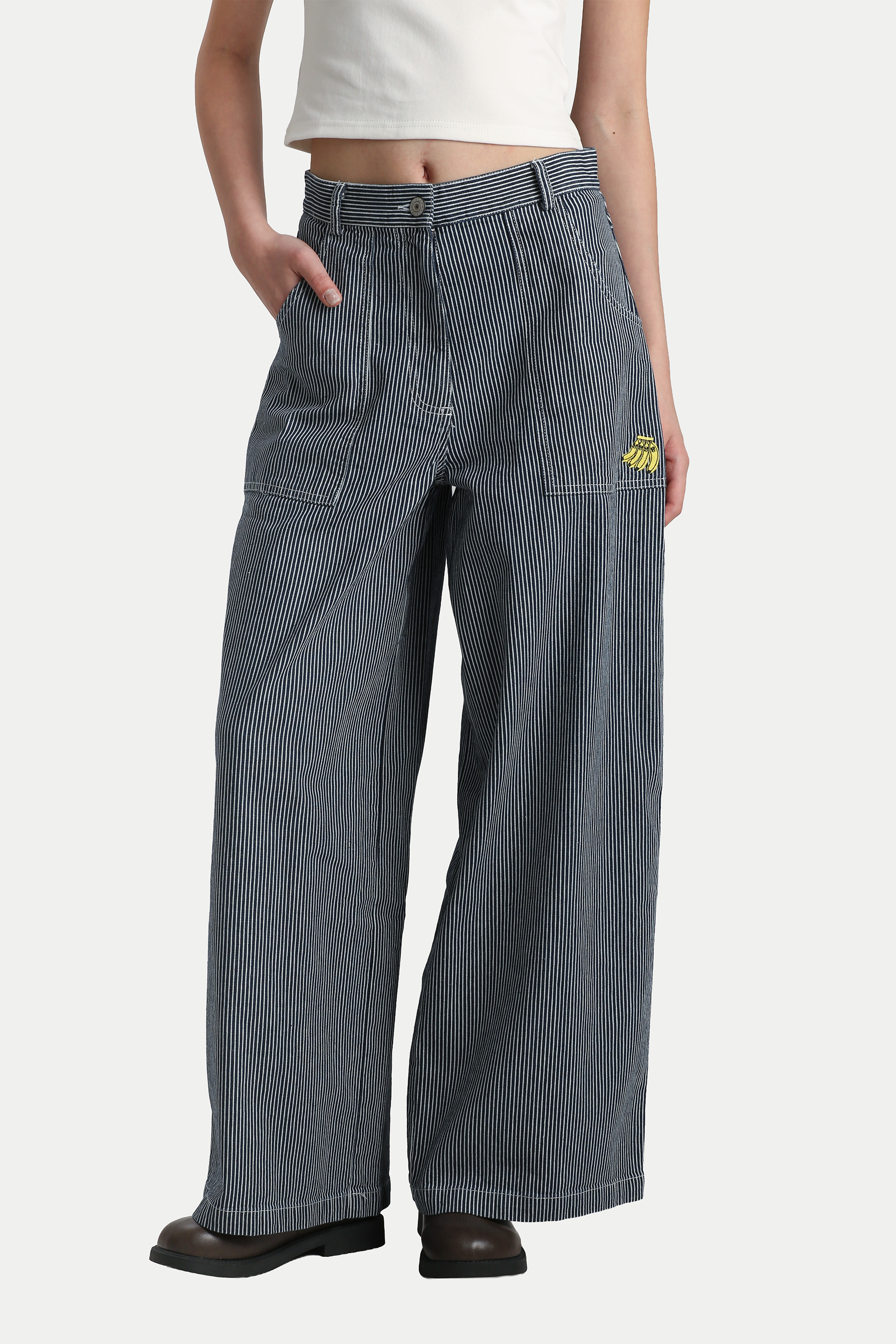 The Arcade x Tess Smith-Roberts “BAD BANANAS” Work Jeans are subtly cute and effortlessly wearable for everyday life. Featuring Tess Smith-Roberts’ quirky banana illustrations embroidered across the jeans, this piece combines a simple, elevated workwear silhouette with an artistic twist. Functional details include multiple pockets and a surprise grocery list label on the back pocket, making the jeans as practical as they are unique. Cut from comfortable denim fabric, they allow for easy movement and come with functional side and back pockets. The jeans open via a front fly with buttons and are unlined.