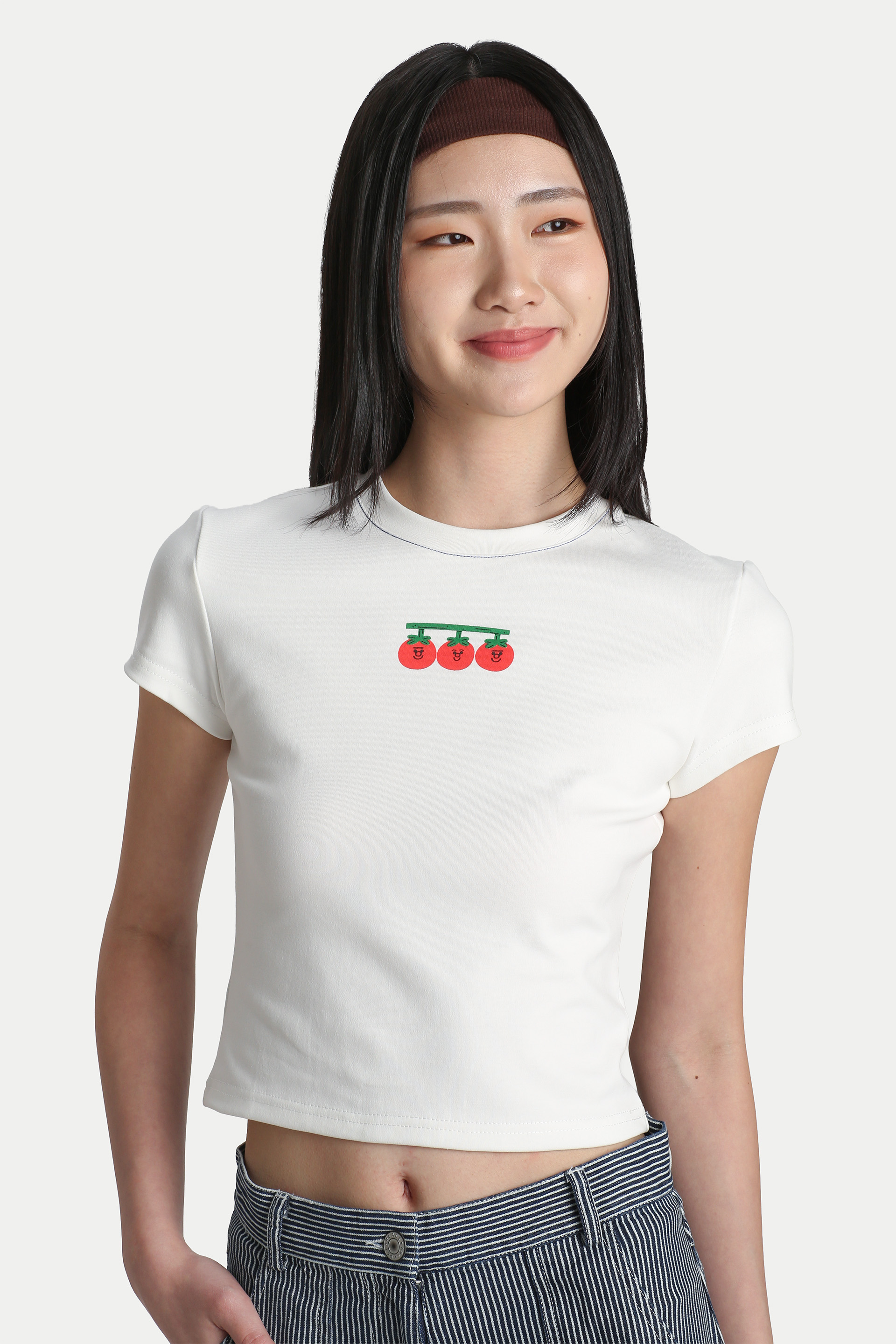 The Arcade x Tess Smith-Roberts Contrast-Stitch Baby Tee is a classic, easy-to-love staple. Featuring Tess Smith-Roberts’ signature fruit illustration printed on the front, it adds a playful touch to a timeless baby tee silhouette. Cut from soft cotton jersey, the fabric has a comfortable stretch that moves with you, making it perfect for everyday wear. Finished with contrast stitching for a subtle pop of detail. Style it with jeans for an effortlessly cute look, or pair it with a pleated skirt for a charming girl-next-door feel. Slip-on wear. Unlined.