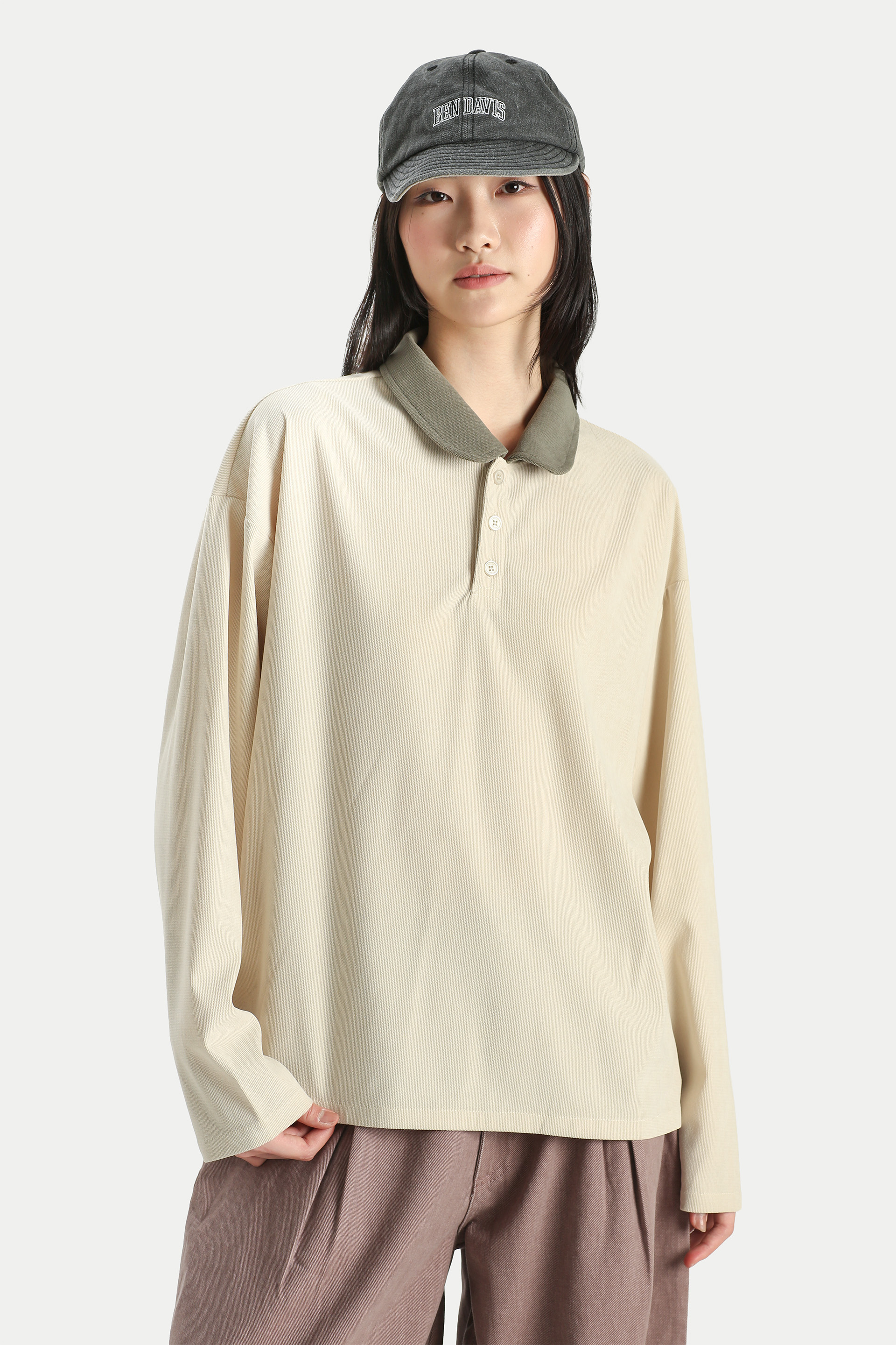 The Leia Contrast Round Collar Polo is a cute and comfortable piece to throw on and go. Crafted from a breathable cotton blend waffle jersey, it’s ideal for our hot and sunny weather. Featuring a Henley button-down design, a boxy fit, and an adorable contrasting round collar that adds a subtle pop, this piece is both easy and stylish. Just throw it on with your favourite bottoms and you're all set for a comfy day. Slip-on wear. Unlined.