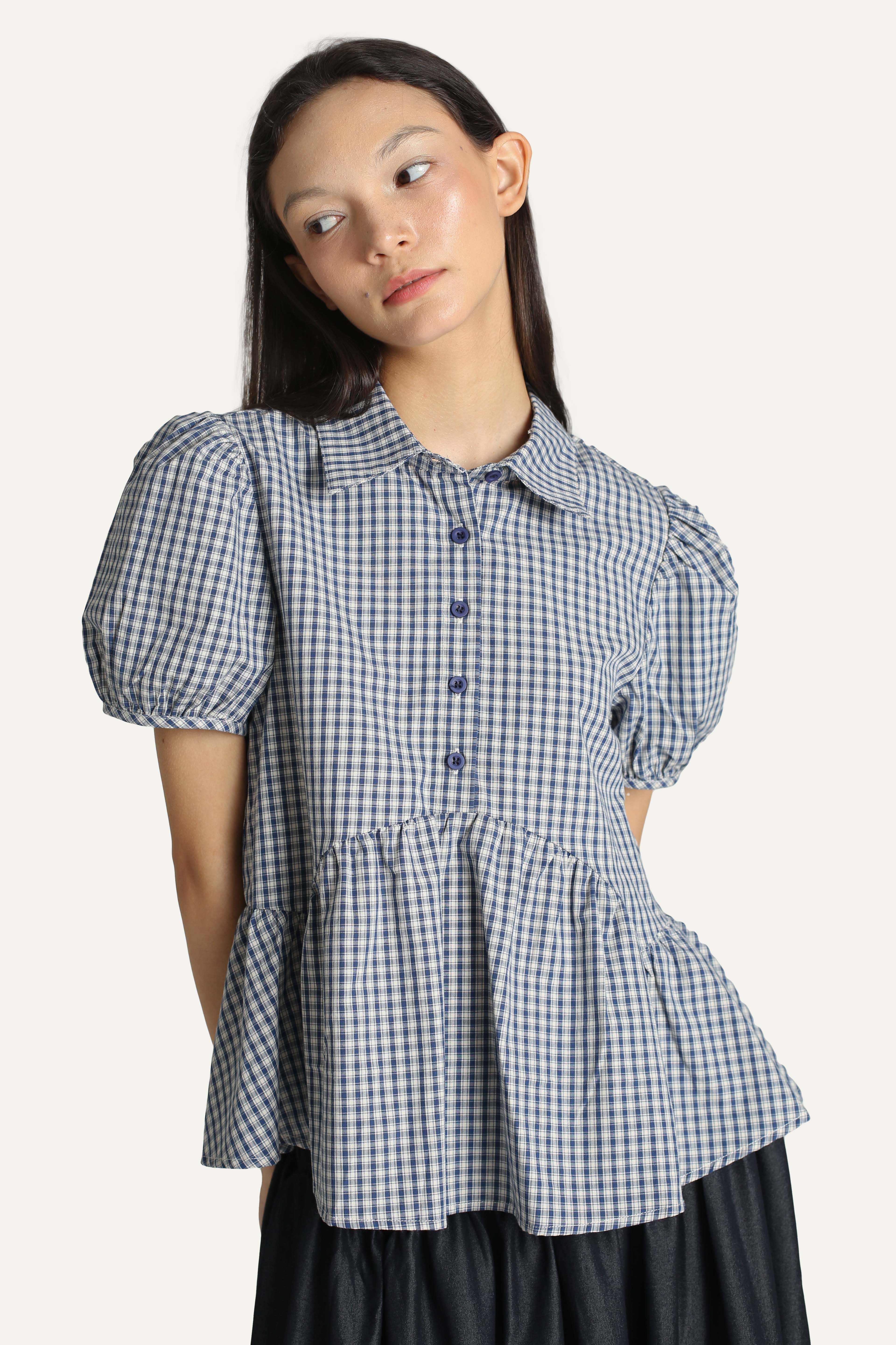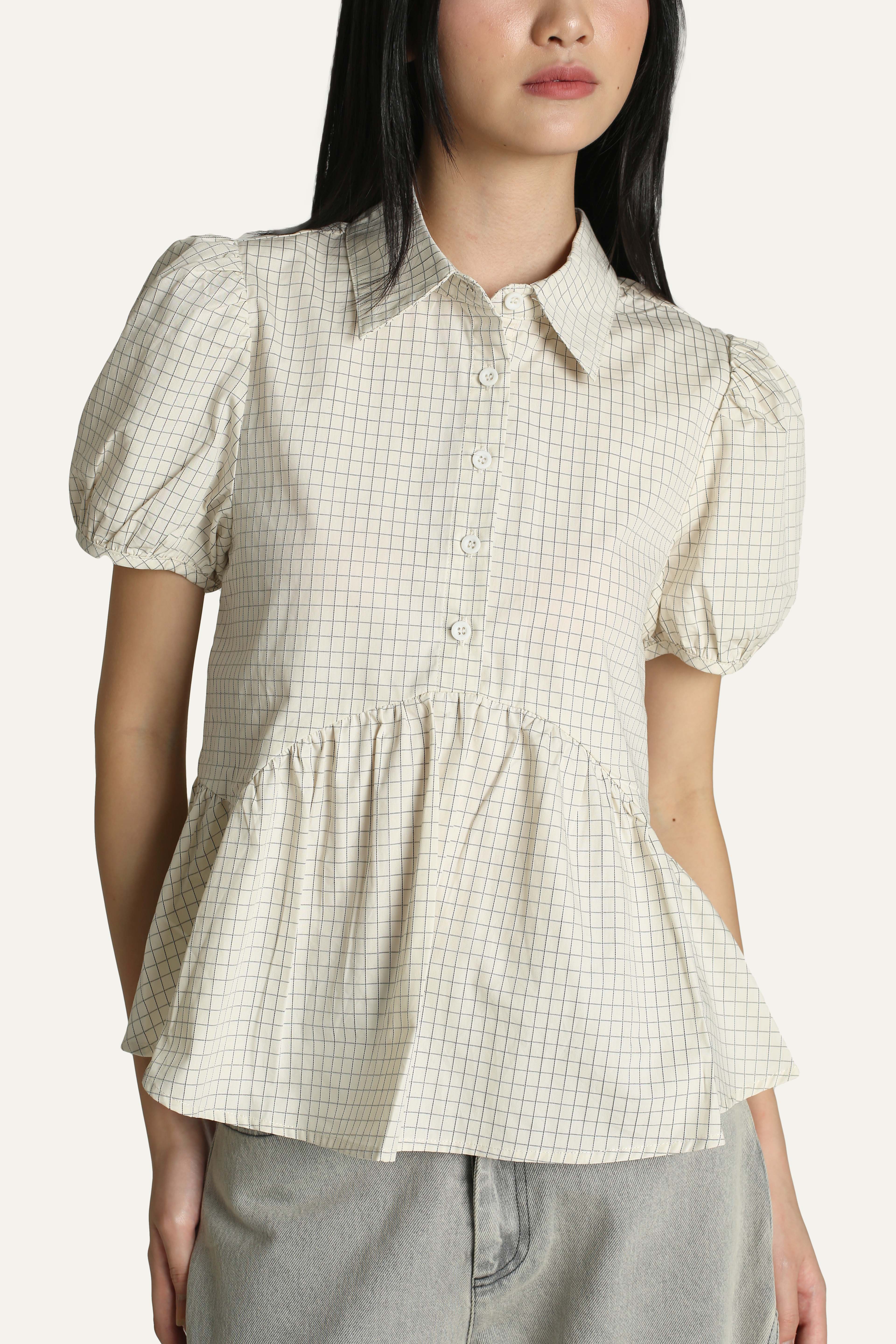 The Janie Puff Sleeve Peplum Shirt is your go-to top for cute and casual outings! Designed with charming puff sleeves, a unique curved waist seam, and a flared peplum hem, this top is full of playful femininity. Made from breathable, comfortable cotton poplin, it keeps you cool and stylish all day. Pair it with jeans for an androgynous edge or a mini skirt for a sweet, girly look. Opens via front button-down closure. Unlined.