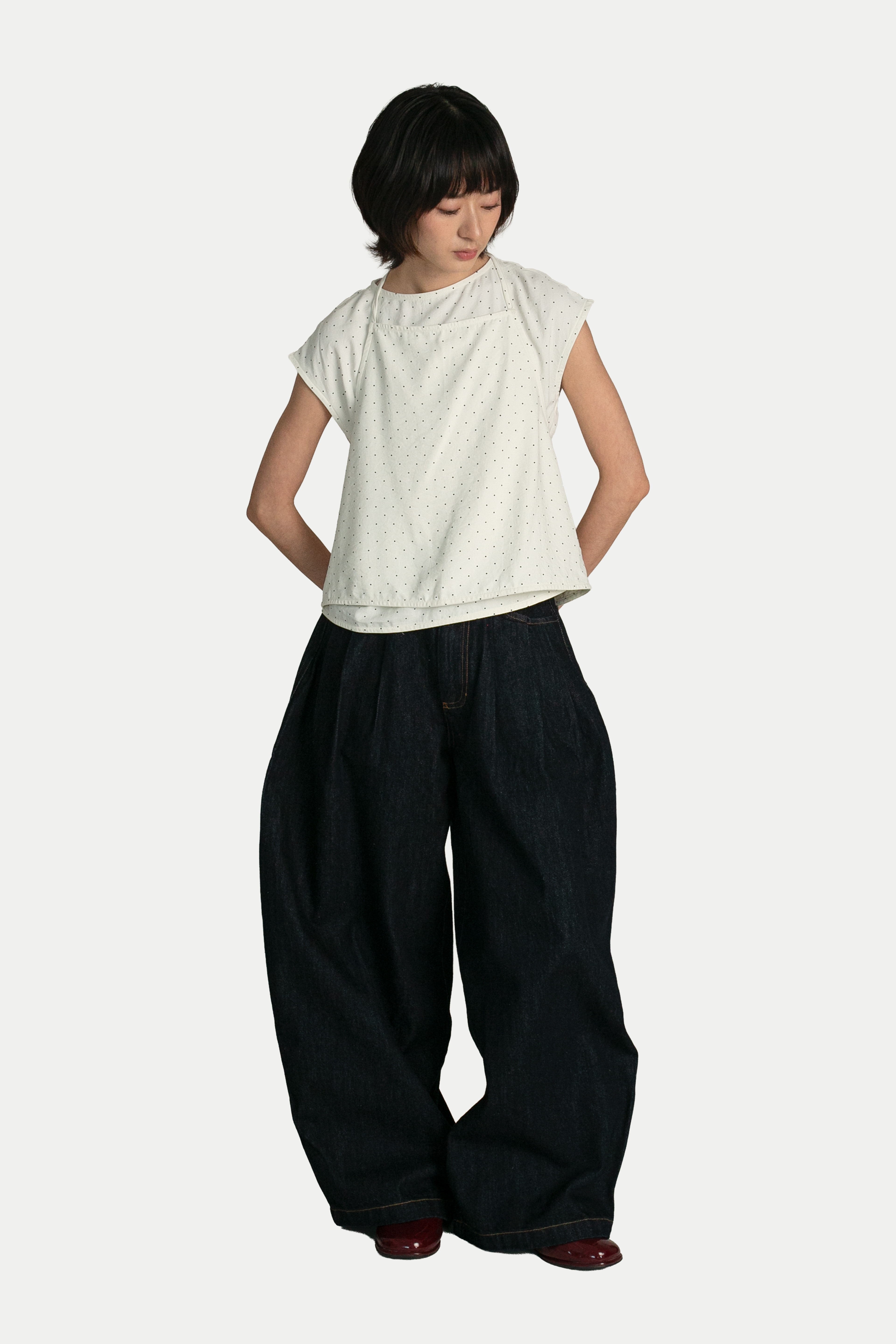 Looking for an elegant yet fun top? The Anne Polka Dot Two-Piece Scarf Top is a classy statement piece, perfect for events and special occasions. Crafted from a polyester blend, it’s lightweight, smooth, and comfortable on the skin. Featuring a minimalist slim silhouette, it comes with an additional scarf/apron layer that adds depth and a touch of mystery to the overall look. Style it with jeans for a chic, modern vibe or with a maxi skirt for a more elegant ensemble. Opens via a concealed back zip. Unlined.